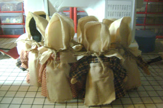 This is what I have been working on. Getting things made for the Railroad Festival. I think I will add them to my website also. I am making prairie dolls using a pattern from Sweet Meadow Farms. I love here patterns. Just ordered another one to make with cats and pumpkins. I can't wait to do that one. Below is some finished stumpy prairie dolls that I made. I am working on the ones with legs now. Love how they turned out.